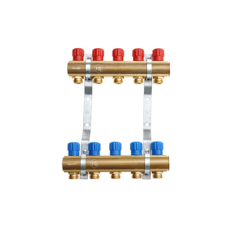 Rozdzielacze centralnego ogrzewania przeznaczone do rozdzielenia medium grzewczego na poszczególne grzejniki. Belki mosiężne profil 39mm z GW 1". Wyposażenie: