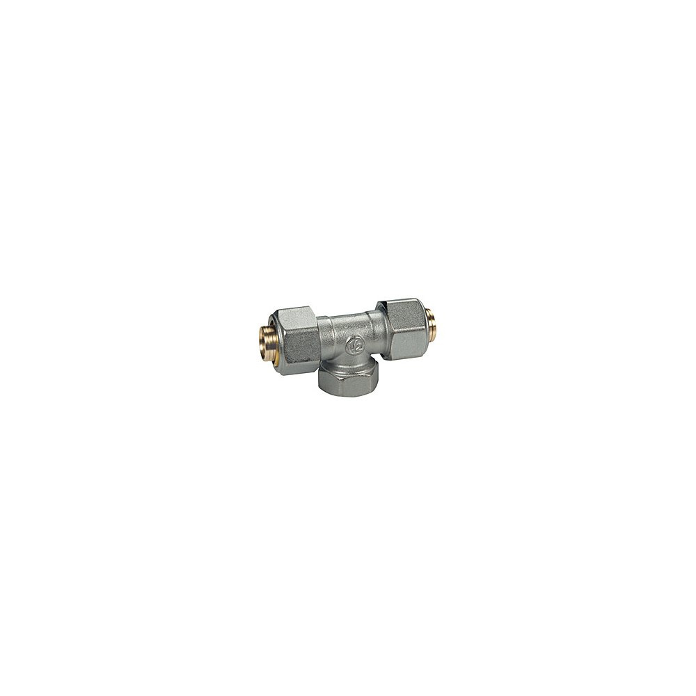 Trójnik GIACOMINI R569AM 90' mosiądz 16x2 x 1/2'' x 16x2 (końcówka wtykowa x GW x końcówka wtykowa), kolor chrom