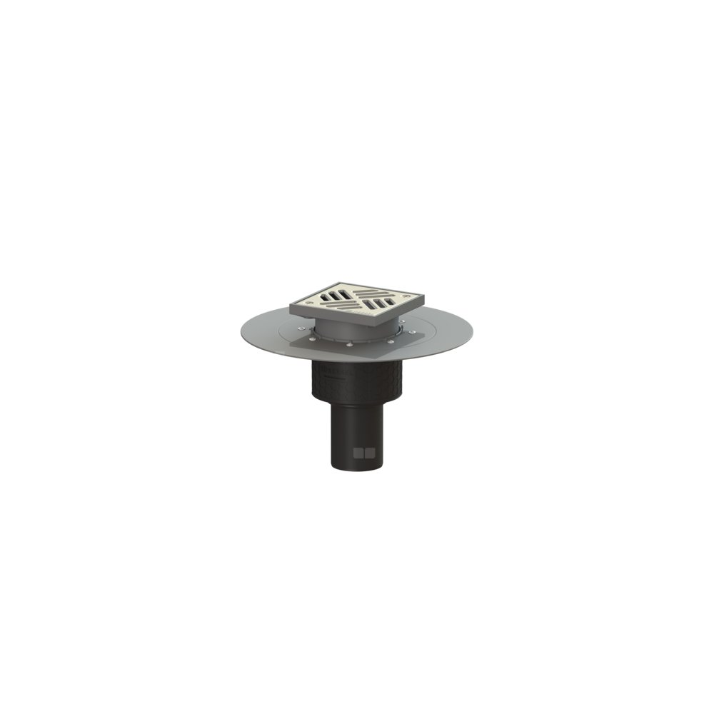 KESSEL Wpust obiektowy Ecoguss kołnier., wielkość nominalna (DN) 70, króciec pionowy, odwodnienie przez odpływ punktowy, syfonem w zestawie, maks. wys. posadzki 25 mm, typ pokrywy Kratka szczelinowa, z regulowaną wysokością