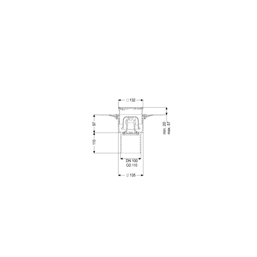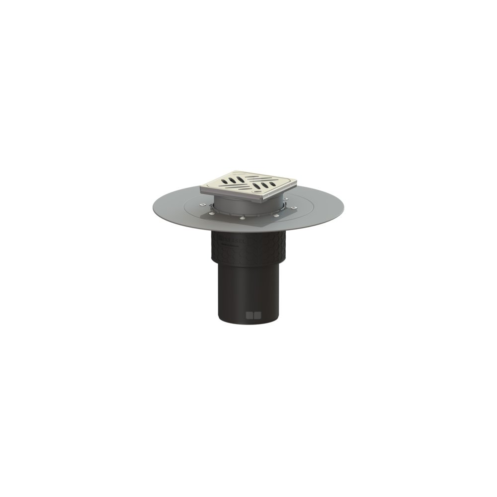 KESSEL Wpust obiektowy Ecoguss kołnier., wielkość nominalna (DN) 100, króciec pionowy, odwodnienie przez odpływ punktowy, syfonem w zestawie, maks. wys. posadzki 16 mm, typ pokrywy Kratka design, z regulowaną wysokością