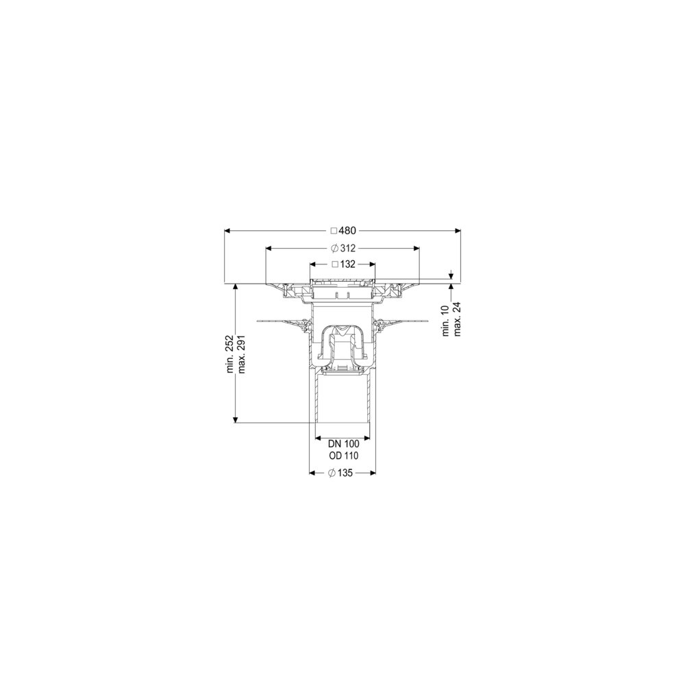 KESSEL Wpust obiektowy Ecoguss kołnier., wielkość nominalna (DN) 100, króciec pionowy, odwodnienie przez odpływ punktowy, syfonem w zestawie, maks. wys. posadzki 24 mm, typ pokrywy Kratka design, regulowany w trzech wymiarach