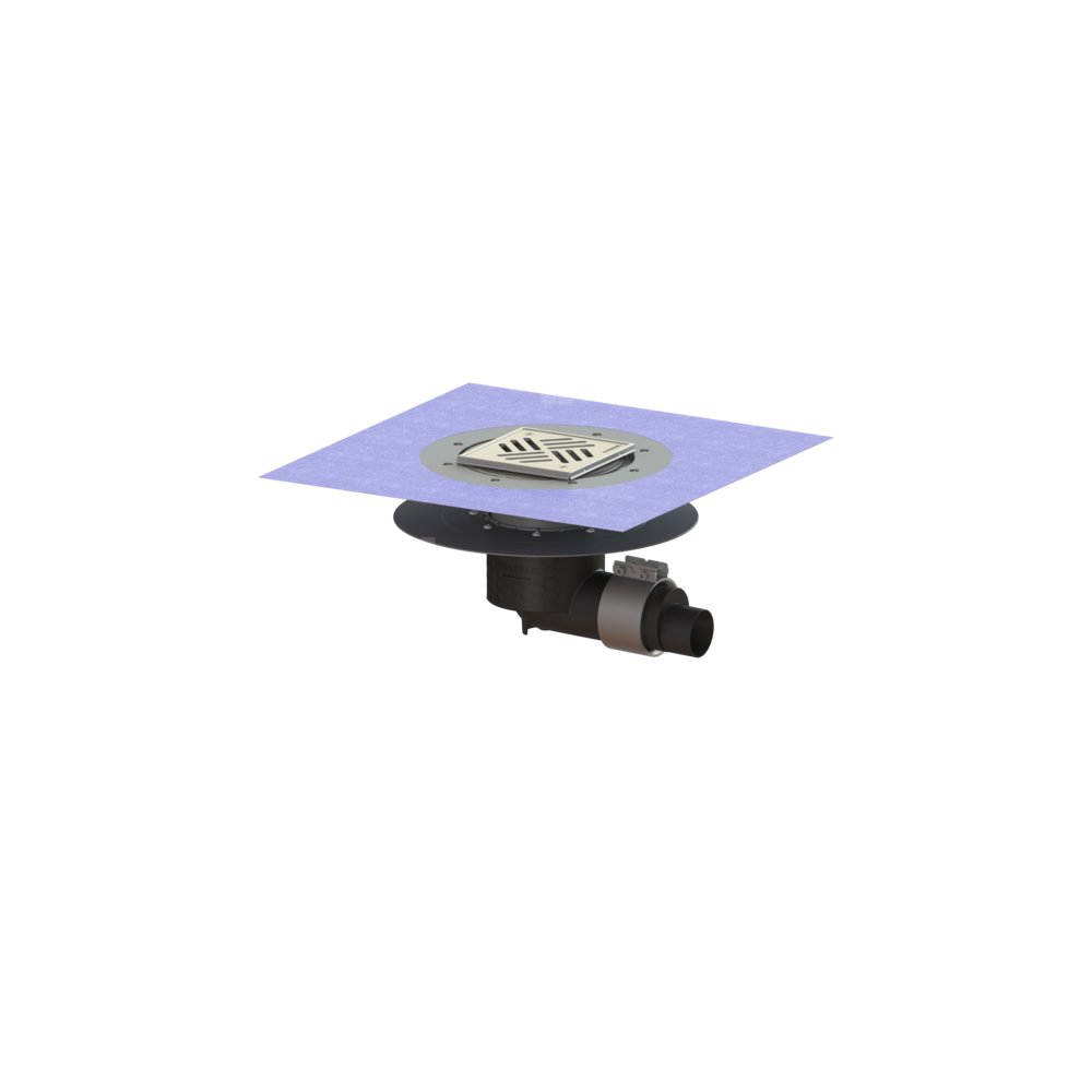 KESSEL Wpust obiektowy Ecoguss kołnier., wielkość nominalna (DN) 50, króciec boczny, odwodnienie przez odpływ punktowy, syfonem w zestawie, maks. wys. posadzki 17 mm, typ pokrywy Kratka szczelinowa, regulowany w trzech wymiarach