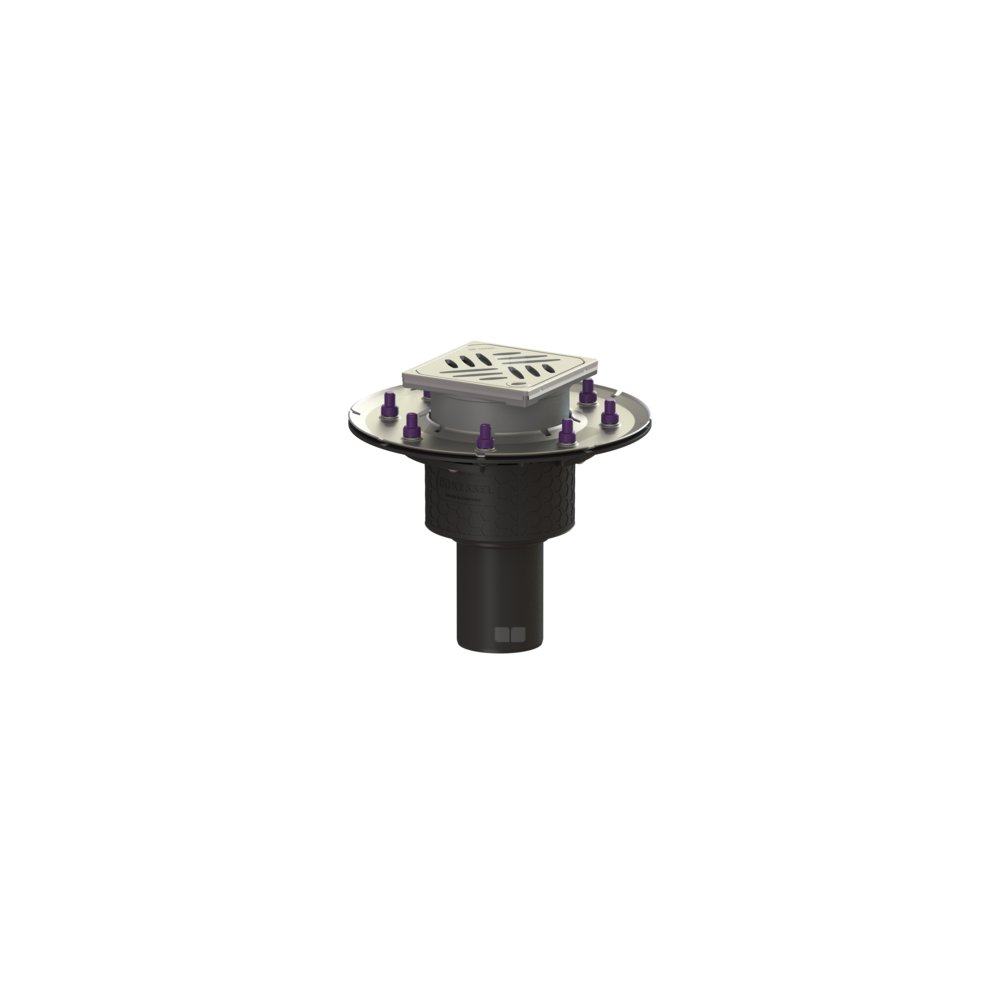 KESSEL Wpust obiek. Ecoguss doc.koł.usz., wielkość nominalna (DN) 70, dł. pokrywy 120 mm, króciec pionowy, syfonem w zestawie, odwodnienie przez odpływ punktowy, maks. wys. posadzki 16 mm, typ pokrywy Kratka design, z regulowaną wysokością