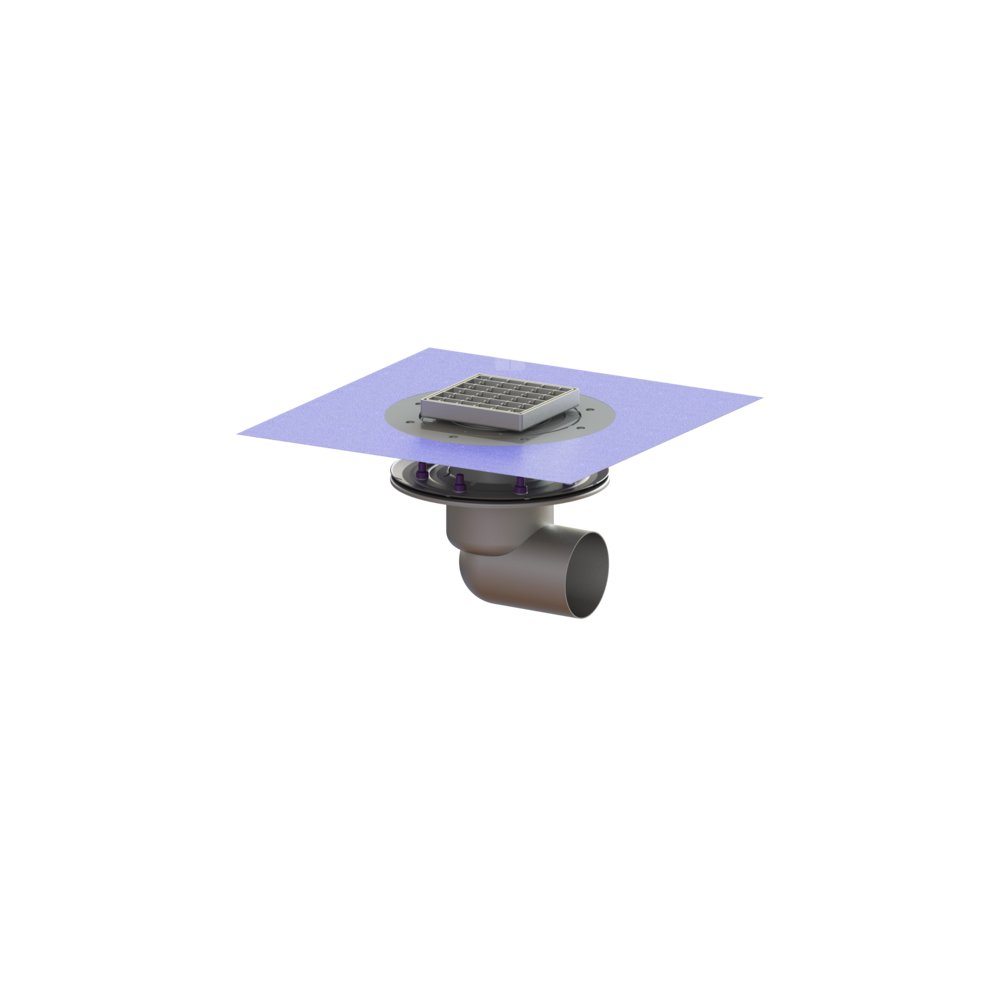 Wpust Ferrofix DN100, odpł.boczny, z nasadką nierdz. i kratką szczel.nierdz. 138x138, sys.125
