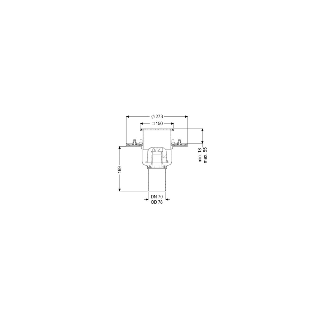 KESSEL W. pod. Ferrofix doc.koł.usz., wielkość nominalna (DN) 70, System 125, króciec pionowy, materiał nasady ABS, z regulowaną wysokością, typ pokrywy Kratka szczelinowa, wymiar zewnętrzny (DZ) 78 mm