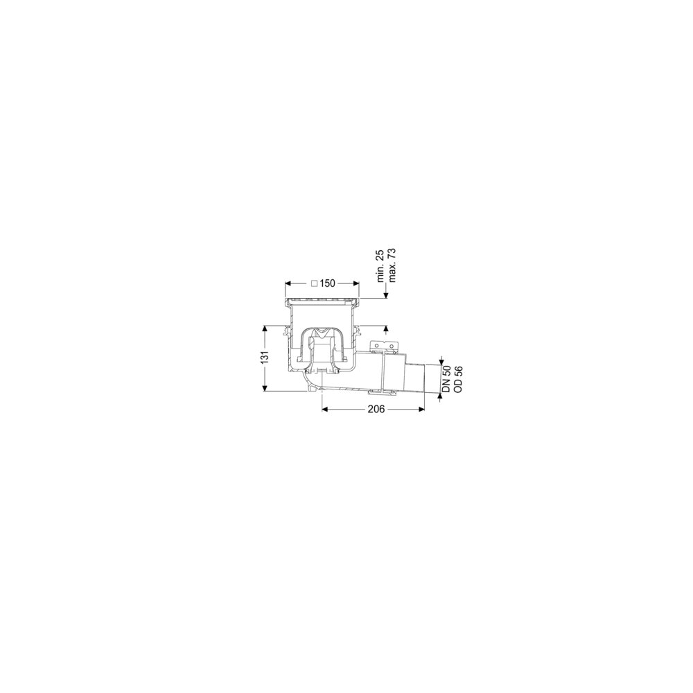 KESSEL Wpust obiektowy Ecoguss, wielkość nominalna (DN) 50, króciec boczny, typ pokrywy Kratka szczelinowa, syfonem w zestawie, z regulowaną wysokością, maks. wys. posadzki 25 mm, zamknięcie przykręcony