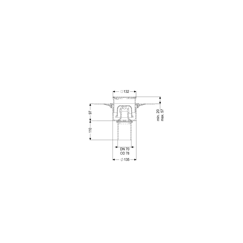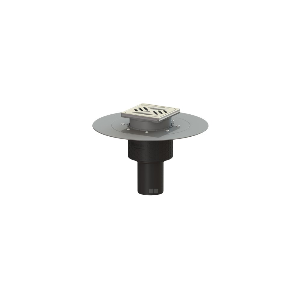KESSEL Wpust obiektowy Ecoguss kołnier., wielkość nominalna (DN) 70, króciec pionowy, odwodnienie przez odpływ punktowy, syfonem w zestawie, maks. wys. posadzki 16 mm, typ pokrywy Kratka design, z regulowaną wysokością