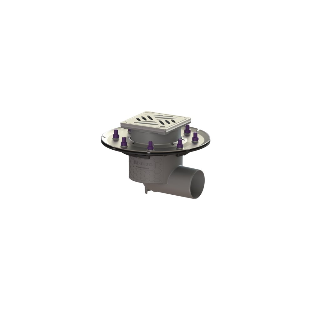 KESSEL Wpust obiek. Practicus doc.koł., dł. pokrywy 120 mm, króciec boczny, wielkość nominalna (DN) 70, syfonem w zestawie, typ pokrywy Kratka design, kratka design Kessel, uszczelnienie nasadzie przez Krawędź przyłączeniowa