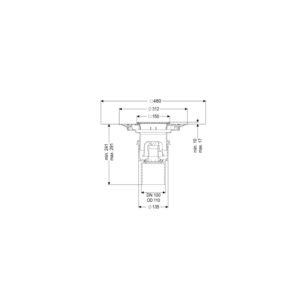 Wpust podłogowy/stropowy Practicus z tworzywa sztucznego służy do odwodnienia punktowego i jest wyposażony w krawędź przyłączeniową oraz wyjmowany syfon, uszczelkę wargową i pokrywę ochronną na czas fazy budowlanej. Z nasadą z ABS z teleskopową regulacją wysokości. Wpust spełnia szczególne wymagania w zakresie izolacyjności akustycznej zgodnie z pomiarami Instytutu Frauenhofera w Stuttgarcie. Króciec odpływowy jest przystosowany do podłączenia do rur SML. Z możliwością przyłączenia do systemu wyrównania potencjałów.