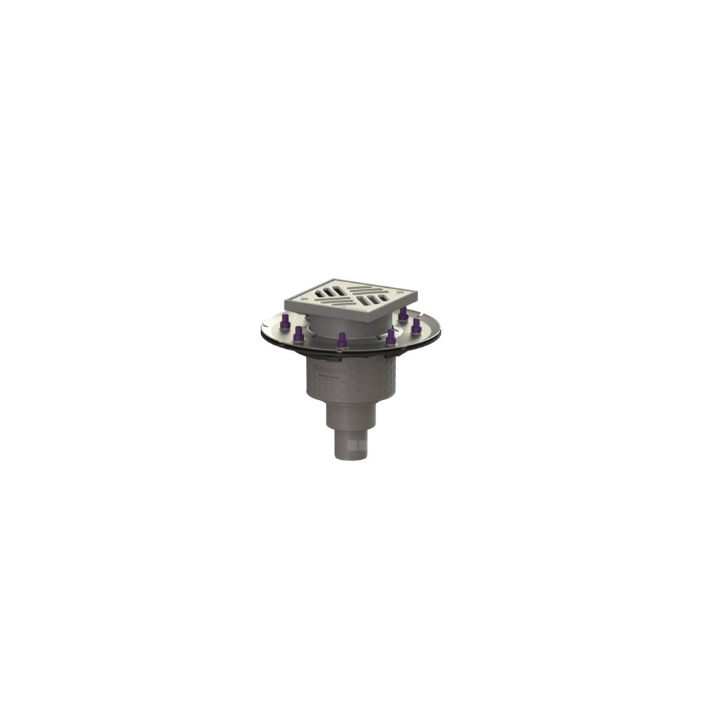 Wpust podłogowy/stropowy Practicus z tworzywa sztucznego służy do odwodnienia punktowego i jest wyposażony w dociskowy kołnierz uszczelniający oraz wyjmowany syfon, uszczelkę wargową i pokrywę ochronną na czas fazy budowlanej. Z nasadą z ABS z teleskopową regulacją wysokości. Wpust spełnia szczególne wymagania w zakresie izolacyjności akustycznej zgodnie z pomiarami Instytutu Frauenhofera w Stuttgarcie. Dociskowy kołnierz uszczelniający z bolcami i śrubami ze stali nierdzewnej służy do dociskania lub zgrzewania taśm bitumicznych i polimerowo-bitumicznych oraz taśm uszczelniających z tworzywa sztucznego i elastomerów. Do uszczelnień wodoszczelnych mogą być stosowane tylko sprawdzone przez producenta membrany hydroizolacyjne.