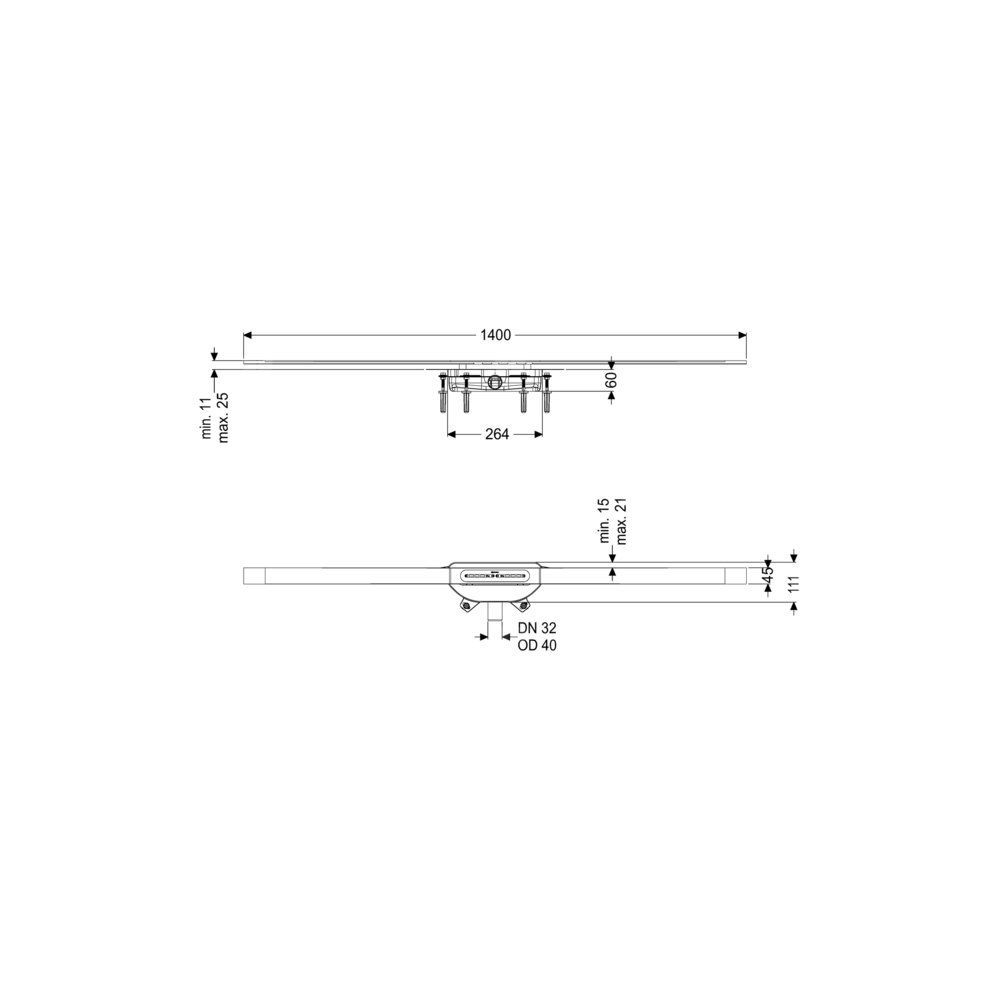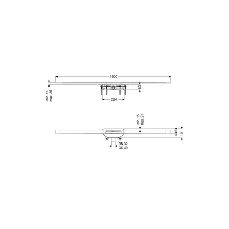 KESSEL Odpływ linio.Linearis Infinity 60, dł. pokrywy 1400 mm, odpływ DN 40 mm, powierzchnia Stal nierdzewna, powierzchnia szczotkowana, typ pokrywy pokrywa ze stali nierdzewnej, syfonem Megastop