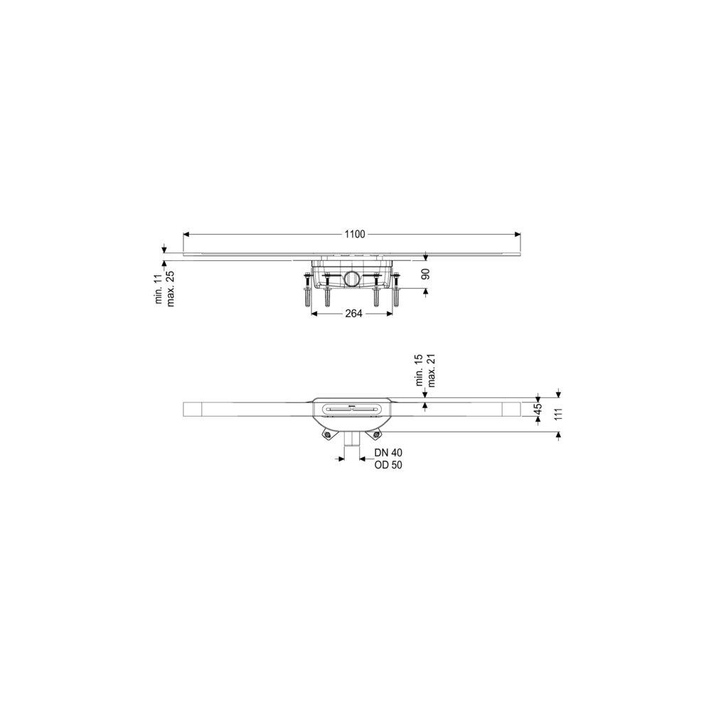 KESSEL Odpływ linio.Linearis Infinity 90, dł. pokrywy 1100 mm, odpływ DN 50 mm, powierzchnia Bronze powierzchnia szczotkowana, typ pokrywy pokrywa ze stali nierdzewnej, syfonem z zamknięciem wodnym 50 mm