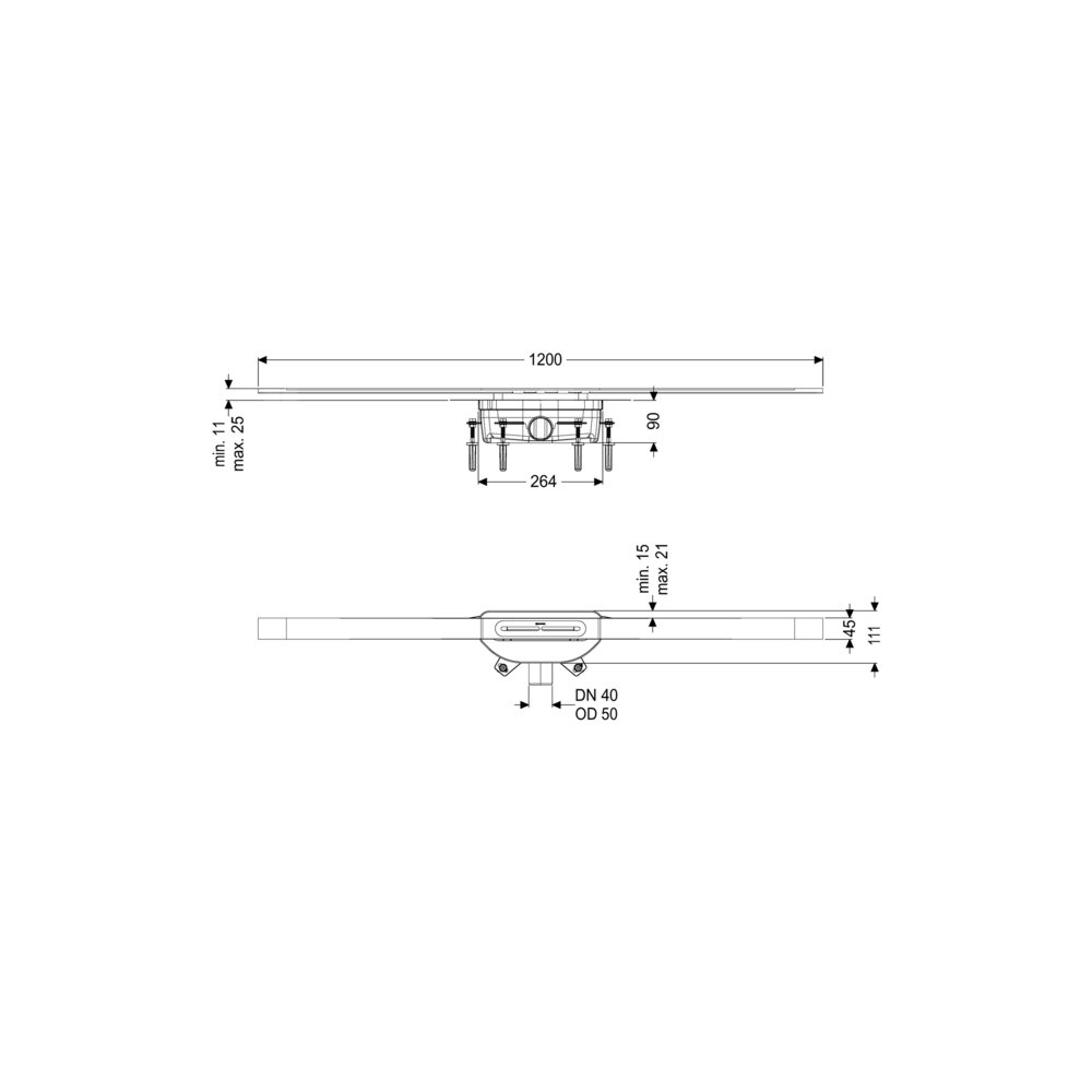 KESSEL Odpływ linio.Linearis Infinity 90, dł. pokrywy 1200 mm, odpływ DN 50 mm, powierzchnia Black powierzchnia szczotkowana, typ pokrywy pokrywa ze stali nierdzewnej, syfonem z zamknięciem wodnym 50 mm