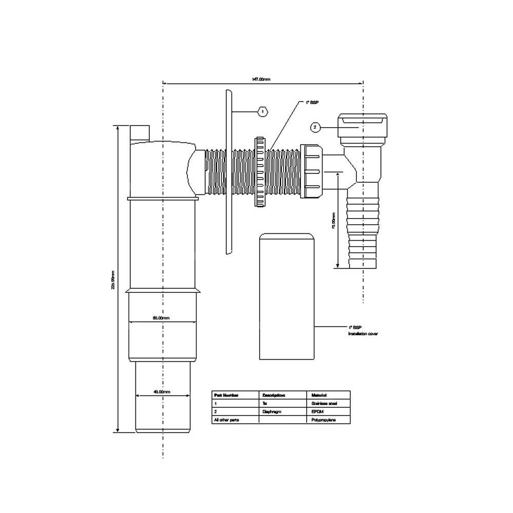 Przyłącze do pralki lub zmywarki podtynk.z zaworkiem kulowym i z zasyfonowaniem z odejściem 50mm ,maskownica CHROM