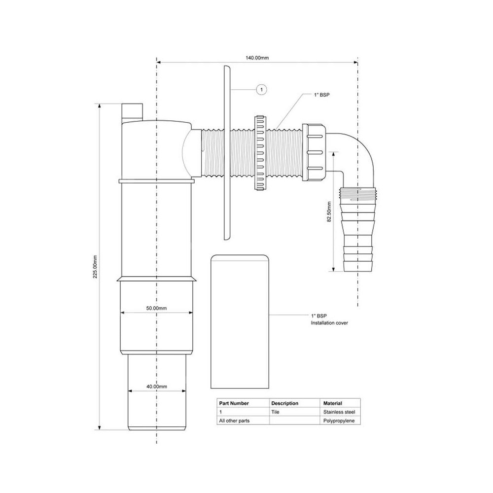 Przyłącze do pralki lub zmywarki z zasyfonowaniem. Odejście 40/50mm.