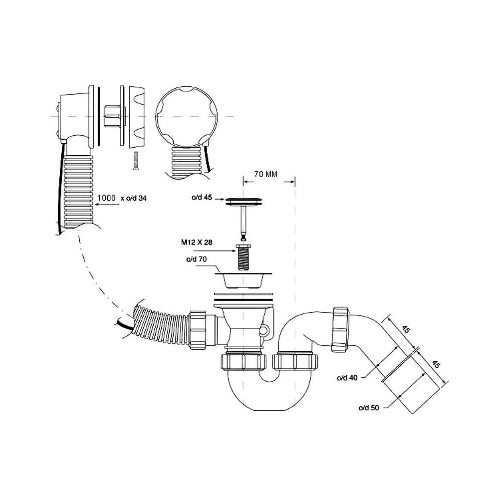 Zestaw odpływ-przelew.wannowy z odejściem 40/50mm,z mech.autom.1000mm pokrętło mosiądz STAL SZCZOTKOWANA