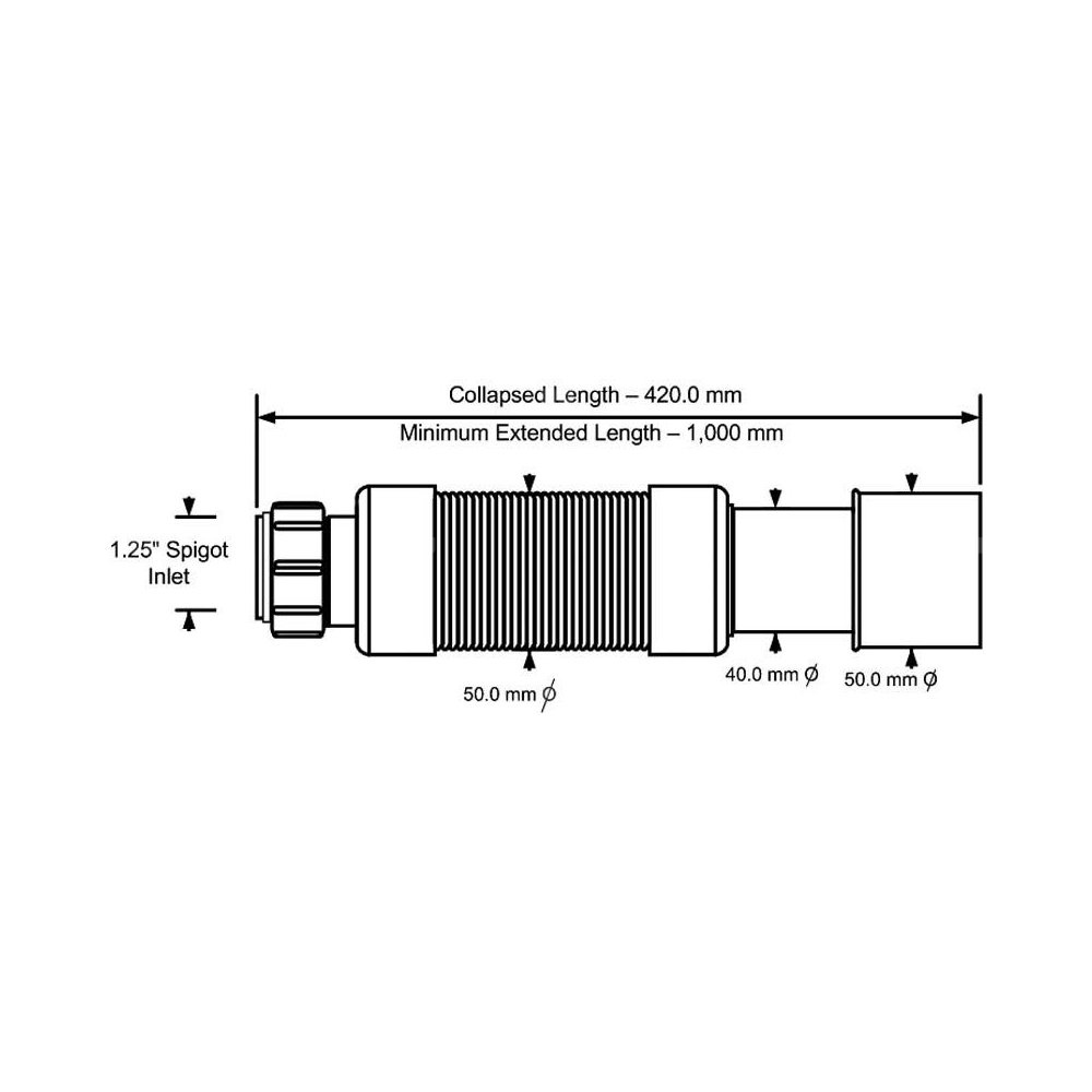 Złączka 11/4"x40/50mm montażowa harmonijkowa, o długości 1000mm, końcówka nakrętna i prosta.