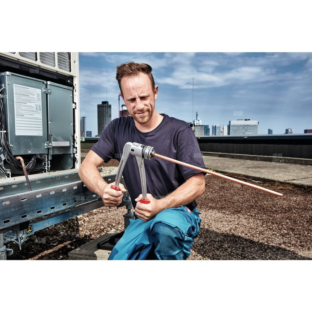 Dzięki ekspanderowi ROLOCK, hydraulicy z branży wodno-kanalizacyjnej/ogrzewania i chłodnictwa/klimatyzacji mogą rozszerzać rury miedziane, ze stali nierdzewnej i aluminium do średnicy 22 mm, oszczędzając złączki i materiał lutowniczy.