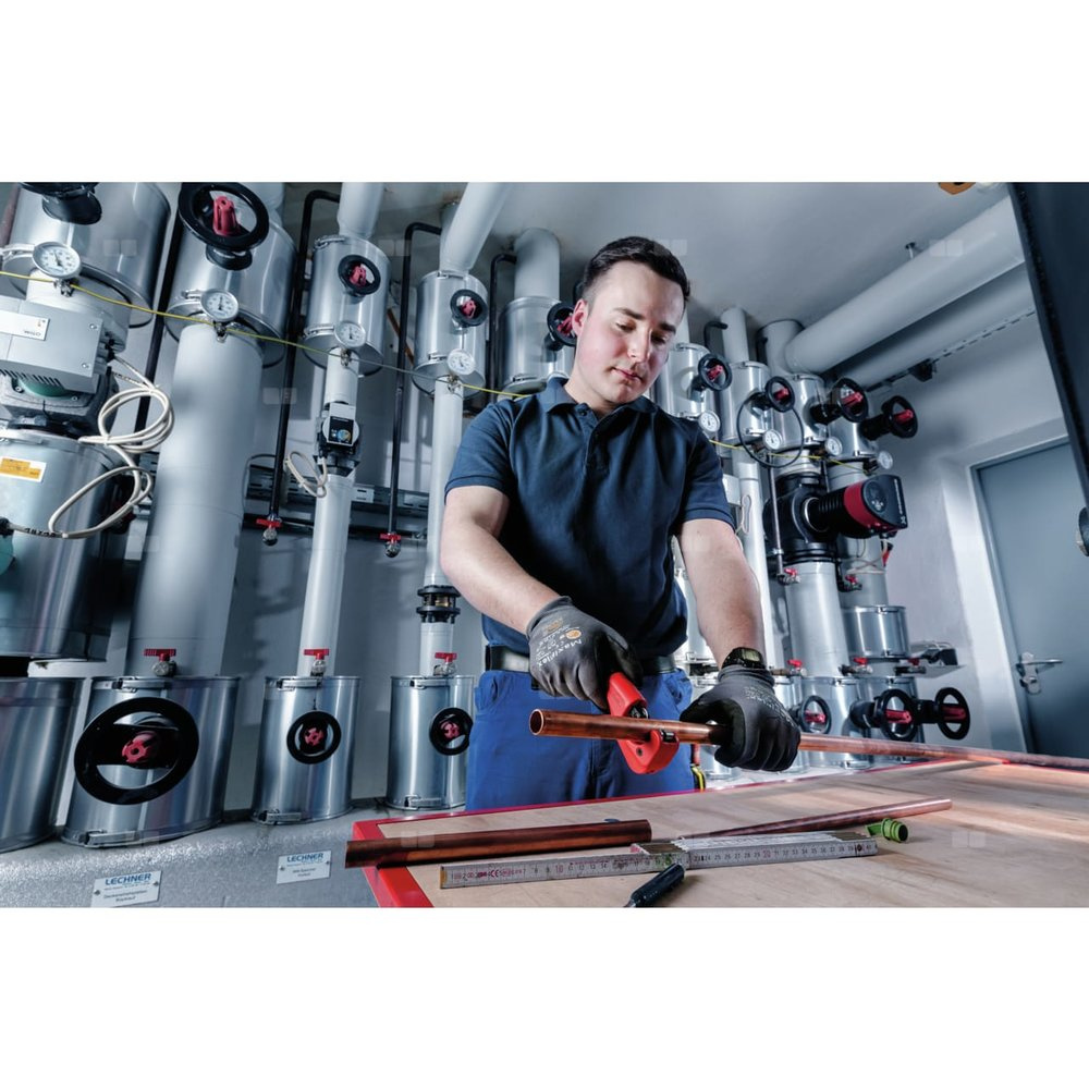 Za pomocą TUBE CUTTER 35 można bez wysiłku ciąć rury miedziane, mosiężne, aluminiowe i cienkościenne stalowe o średnicy 6-35 mm w celu przygotowania połączenia rurowego. Chowany wewnętrzny gratownik do rur i zapasowe kółko tnące w rękojeści pozwalają na ciągłą pracę.