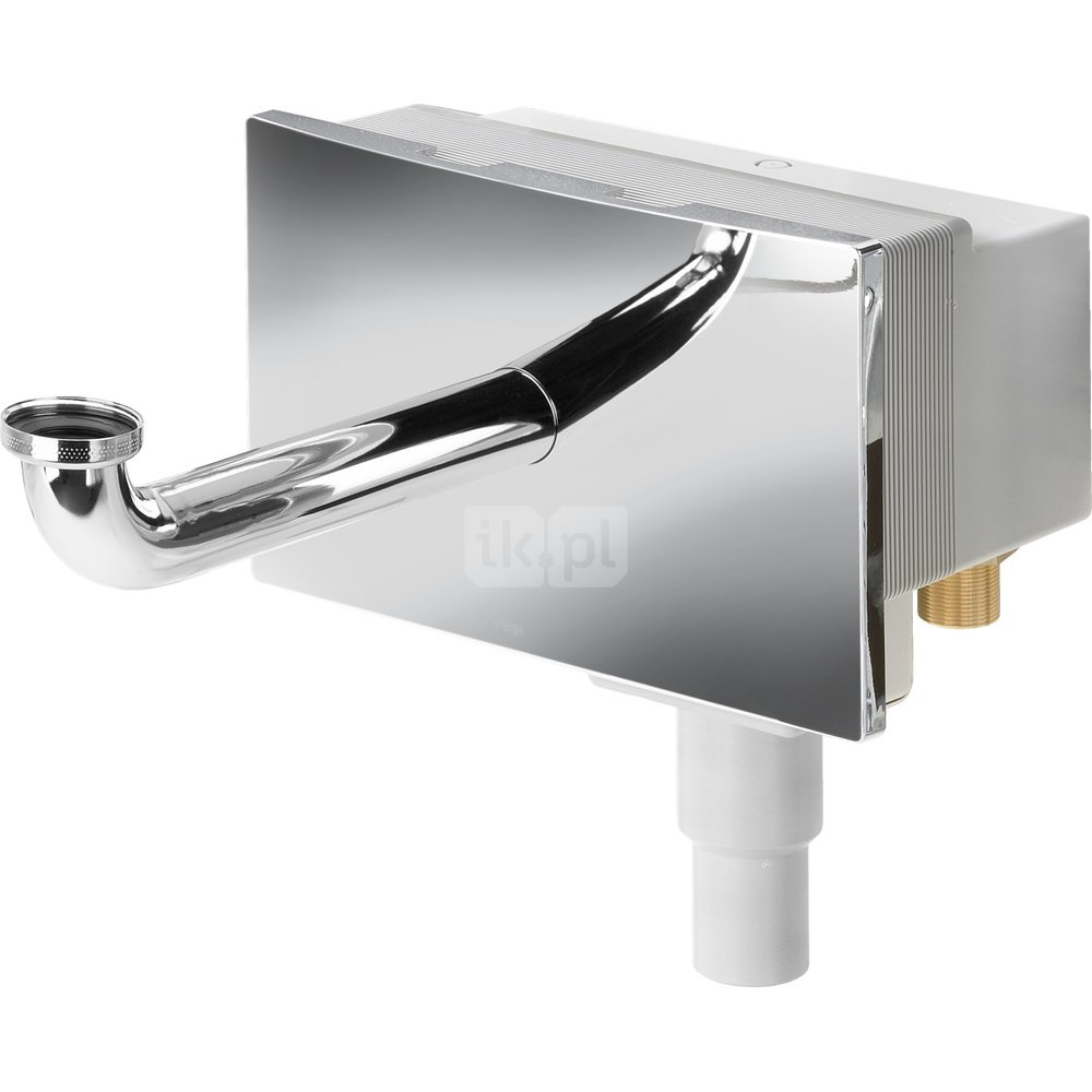 Podtynkowa skrzynka przyłączeniowa - Przeznaczenie: umywalka z armaturą jednootworową, do mokrej zabudowy - tworzywo sztuczne. Wyposażenie: podtynkowej skrzynki przyłączeniowej Syfon z regulacją wysokości, uszczelka DN40/30, 2 przepusty ścienne, 2 zawory kątowe G½ –G⅜, 2 podwójne dwuzłączki proste z dwuzłączkami zaciskanymi do rur miedzianych d10, 2 rury przyłączeniowe chromowane d10, łuk odpływowy 300 mm mosiądz chromowany, płytka maskująca tworzywo sztuczne chromowana do podtynkowej skrzynki przyłączeniowej, materiał do mocowania nr wzoru 8314 nr kat. 734 817