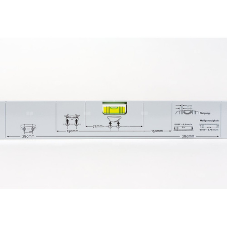 Standardowa poziomica do dokładnego poziomego i pionowego wyrównania obiektów.