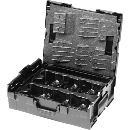 Wkładka walizki może pomieścić do 6 różnych szczęk zaciskowych PT2 (np. metalowe systemy złączek zaprasowywanych d12–35).