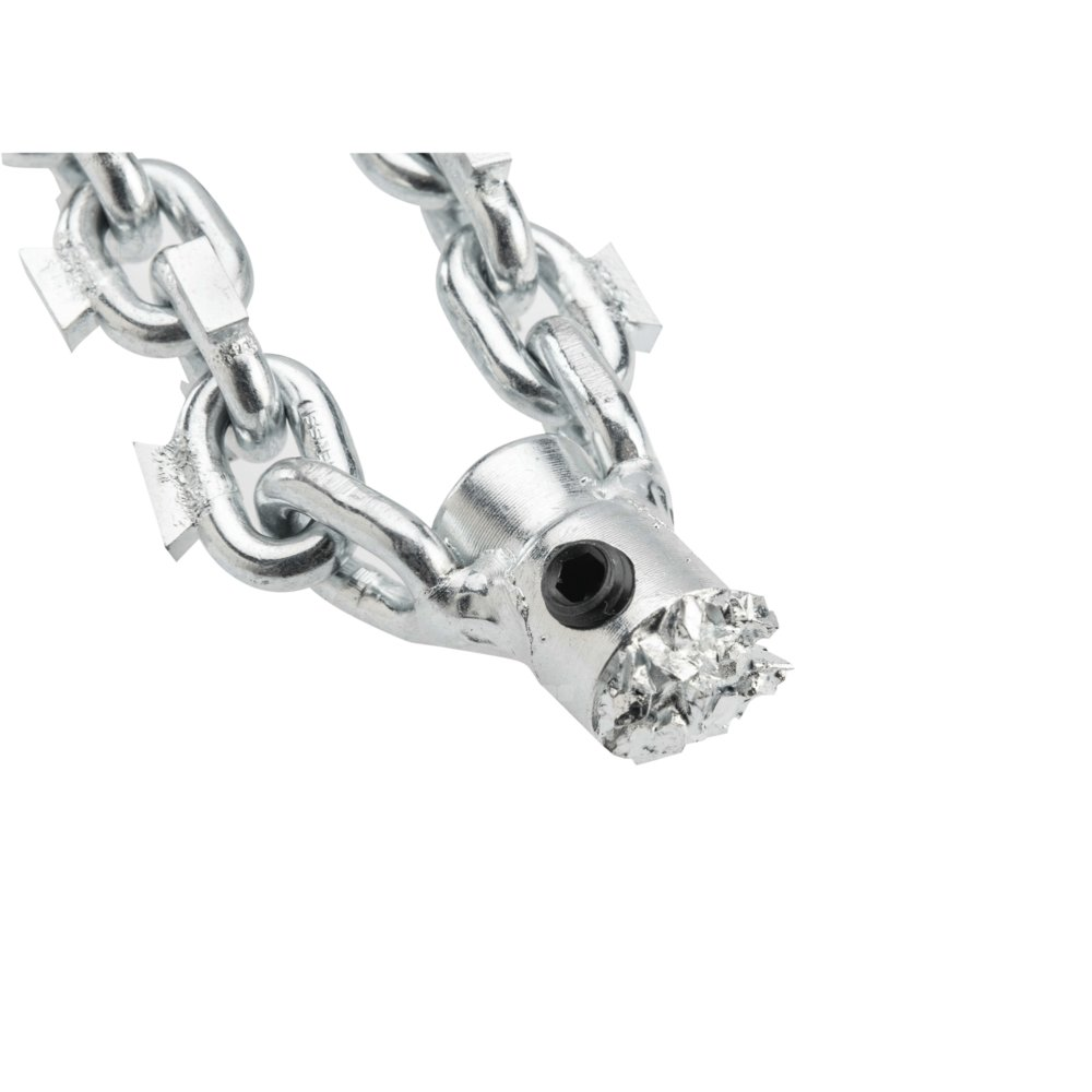 Penetrujący wybijak łańcuchowy z końcówkami z węglików spiekanych do czyszczenia ścian rur z twardych materiałów oraz usuwania miękkich zatorów, osadów z tłuszczu, kamienia, korzeni i nawilżanych chusteczek.