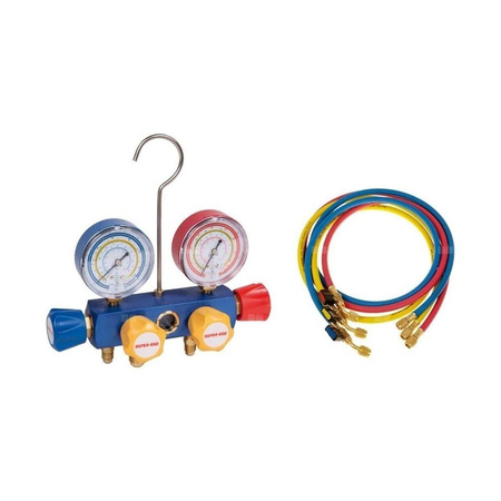 Zawory czterodrogowe pozwalają na podłączenie niskiego i wysokiego ciśnienia oraz dwóch węży do akcesoriów, np. pompy próżniowej lub butli z czynnikiem na raz. Przyłącze VAC do pompy próżniowej 3/8" SAE.