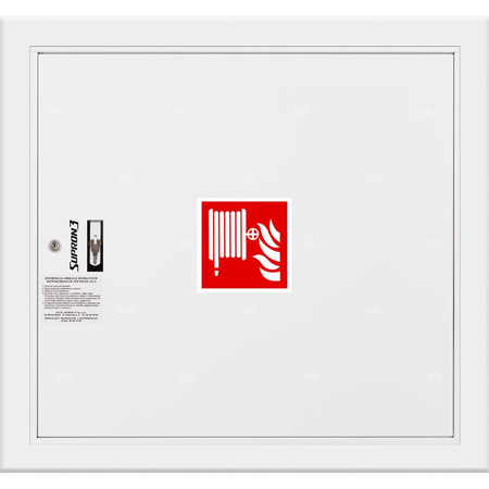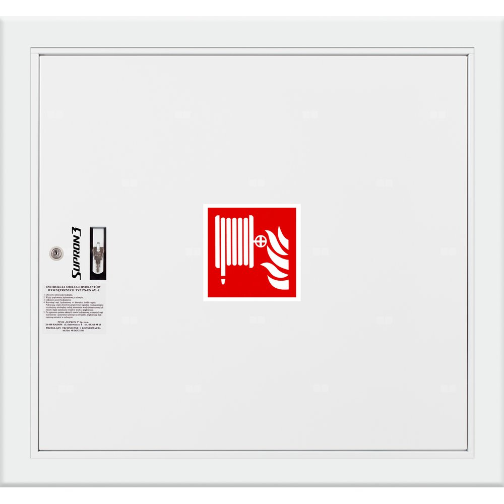 • szafka hydrantowa STANDARD wykonana z blachy czarnej malowanej farbą proszkową poliestrową fasadową typ Facade w kolorze czerwonym (RAL 3000) lub białym (RAL 9003), drzwi pełne; dzięki zastosowaniu zawiasu krytego drzwi szafki można otworzyć o 180°