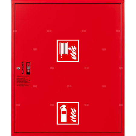 - szafka hydrantowa STANDARD wykonana z blachy czarnej malowanej farbą proszkową poliestrową fasadową typ Facade w kolorze czerwonym (RAL 3000) lub białym (RAL 9003), drzwi pełne; dzięki zastosowaniu zawiasu krytego drzwi szafki można otworzyć o 180°