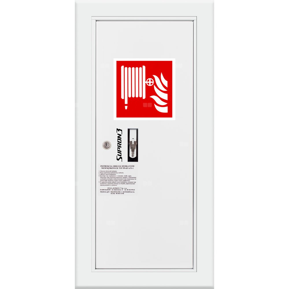 - szafka hydrantowa STANDARD wykonana z blachy czarnej malowanej farbą proszkową poliestrową fasadową typ Facade w kolorze czerwonym (RAL 3000) lub białym (RAL 9003), drzwi pełne; dzięki zastosowaniu zawiasu krytego drzwi szafki można otworzyć o 180°