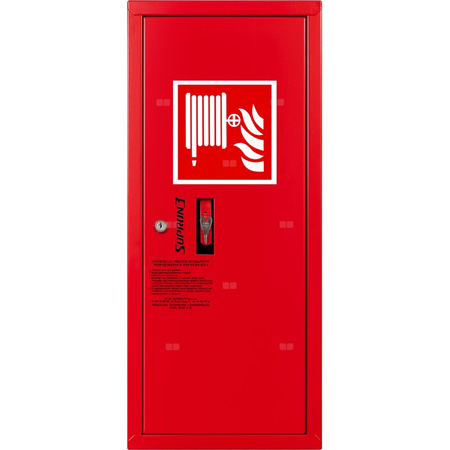- szafka hydrantowa STANDARD wykonana z blachy czarnej malowanej farbą proszkową poliestrową fasadową typ Facade w kolorze czerwonym (RAL 3000) lub białym (RAL 9003), drzwi pełne; dzięki zastosowaniu zawiasu krytego drzwi szafki można otworzyć o 180°