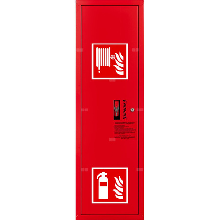 - szafka hydrantowa STANDARD wykonana z blachy czarnej malowanej farbą proszkową poliestrową fasadową typ Facade w kolorze czerwonym (RAL 3000) lub białym (RAL 9003), drzwi pełne; dzięki zastosowaniu zawiasu krytego drzwi szafki można otworzyć o 180°