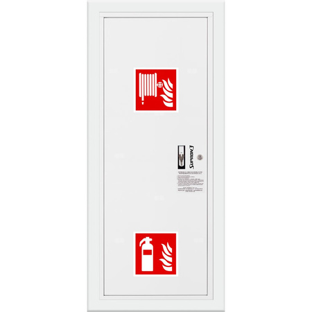 - szafka hydrantowa OCYNKOWANA wykonana z blachy stalowej ocynkowanej elektrolitycznie malowanej farbą proszkową poliestrową fasadową typu Facade w kolorze czerwonym (RAL 3000) lub białym (RAL 9003), drzwi pełne; dzięki zastosowaniu zawiasu krytego drzwi szafki można otworzyć o 180°