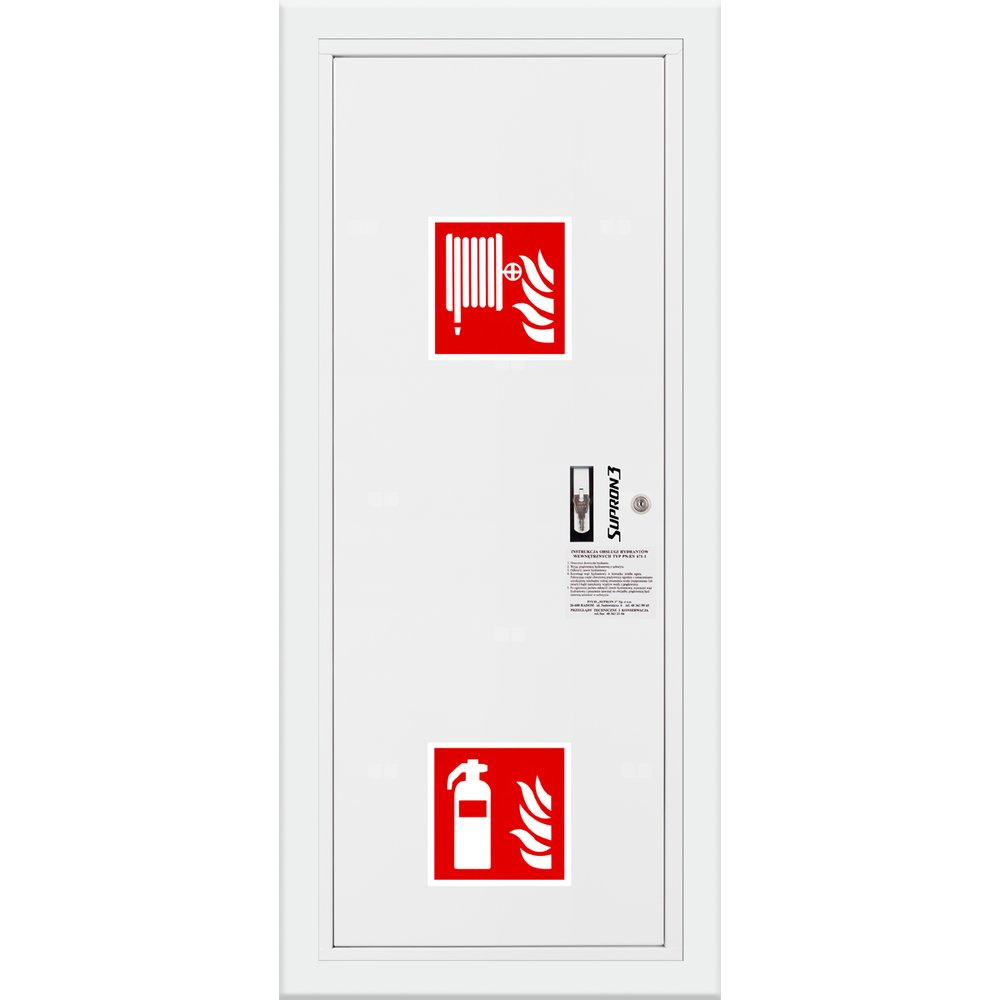 Hydrant DN 33 wnękowy boczny z miejscem na gaśnicę, wąż 30 m, ocynk fasada, zamek patent, RAL 9003 lewy