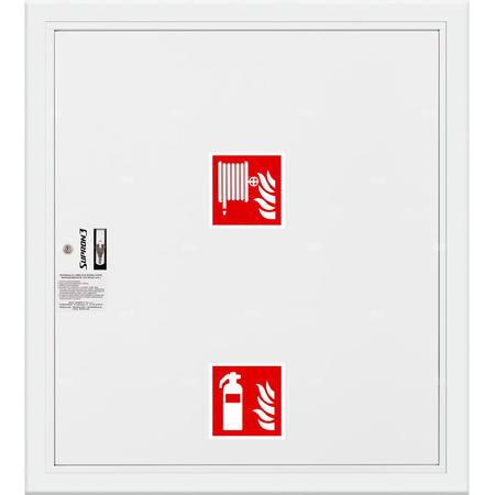 Hydrant DN 33 wnękowy z miejscem na gaśnicę pod zwijadłem, wąż 20 m, ocynk fasada, zamek patent, RAL 9003