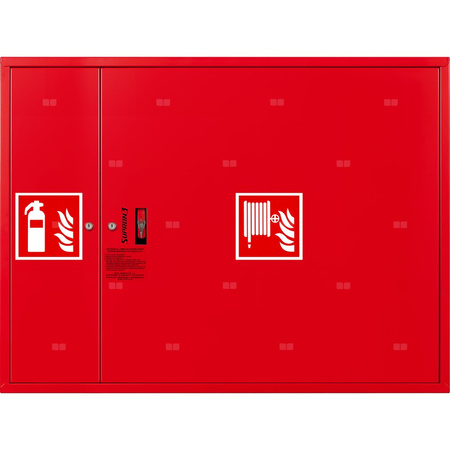 - szafka hydrantowa OCYNKOWANA wykonana z blachy stalowej ocynkowanej elektrolitycznie malowanej farbą proszkową poliestrową fasadową typu Facade w kolorze czerwonym (RAL 3000) lub białym (RAL 9003), drzwi pełne; dzięki zastosowaniu zawiasu krytego drzwi szafki można otworzyć o 180°