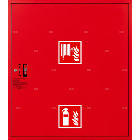 - szafka hydrantowa OCYNKOWANA wykonana z blachy stalowej ocynkowanej elektrolitycznie malowanej farbą proszkową poliestrową fasadową typu Facade w kolorze czerwonym (RAL 3000) lub białym (RAL 9003), drzwi pełne; dzięki zastosowaniu zawiasu krytego drzwi szafki można otworzyć o 180°