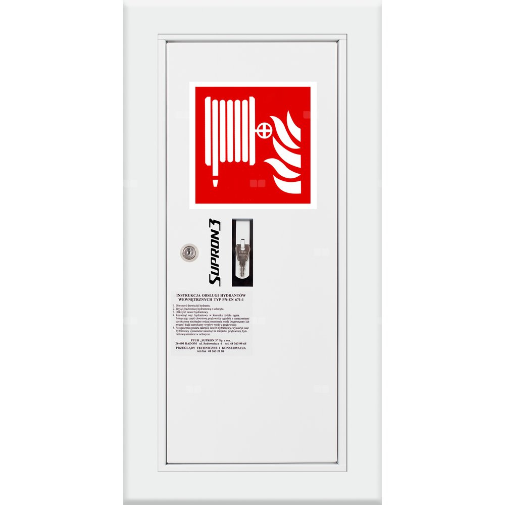 - szafka hydrantowa STANDARD wykonana z blachy czarnej malowanej farbą proszkową poliestrową fasadową typ Facade w kolorze czerwonym (RAL 3000) lub białym (RAL 9003), drzwi pełne; drzwi szafki można otworzyć o 180°