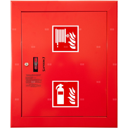Hydrant DN 52 wnękowy z koszem, 600x500x200 mm, z miejscem na gaśnicę, wąż 20 m, zamek patent, RAL 3000