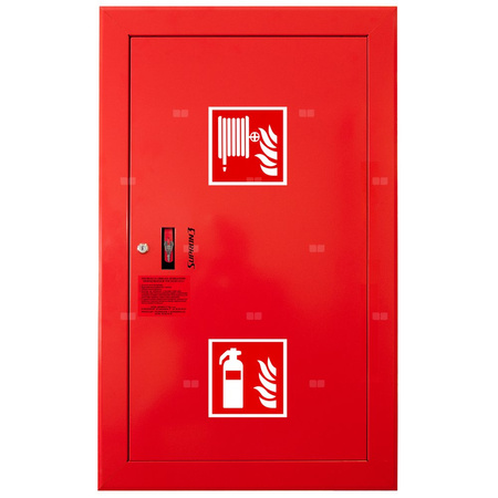 Hydrant DN 52 wnękowy z koszem, 850x500x200 mm, z miejscem na gaśnicę, wąż 2x15 m, zamek patent, RAL 3000
