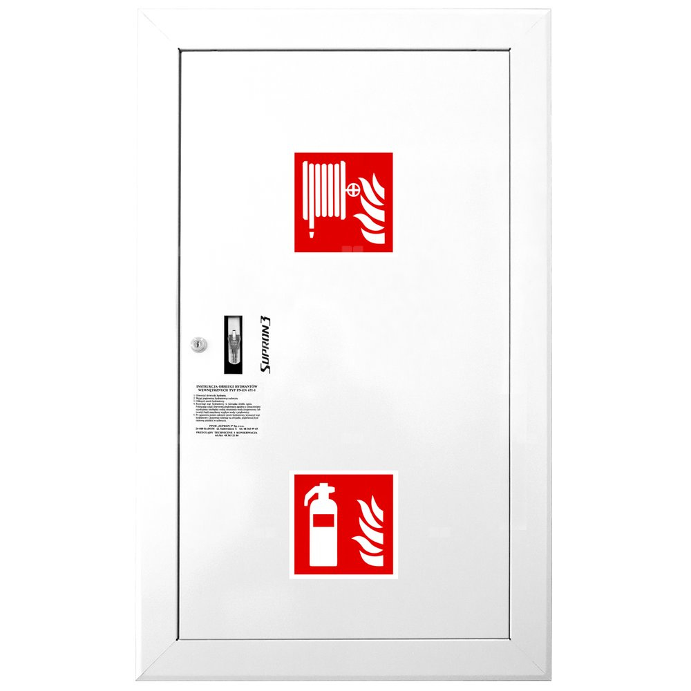 Hydrant DN 52 wnękowy z koszem, 850x500x200 mm, z miejscem na gaśnicę, wąż 2x15 m, zamek patent, RAL 9003
