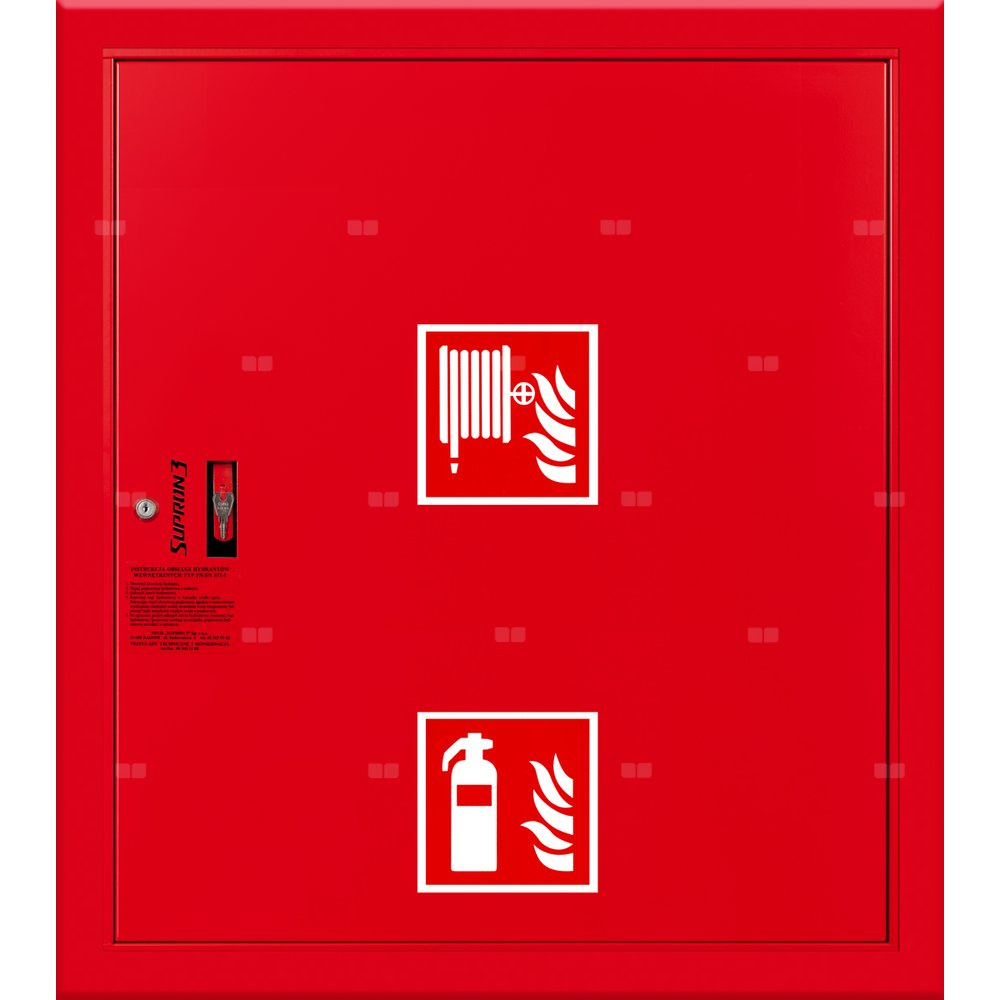 - szafka hydrantowa STANDARD wykonana z blachy czarnej malowanej farbą proszkową poliestrową fasadową typ Facade w kolorze czerwonym (RAL 3000) lub białym (RAL 9003), drzwi pełne; drzwi szafki można otworzyć o 180°