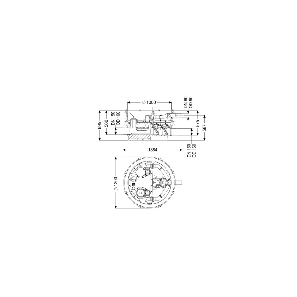 - Przewód tłoczny (DN): 80