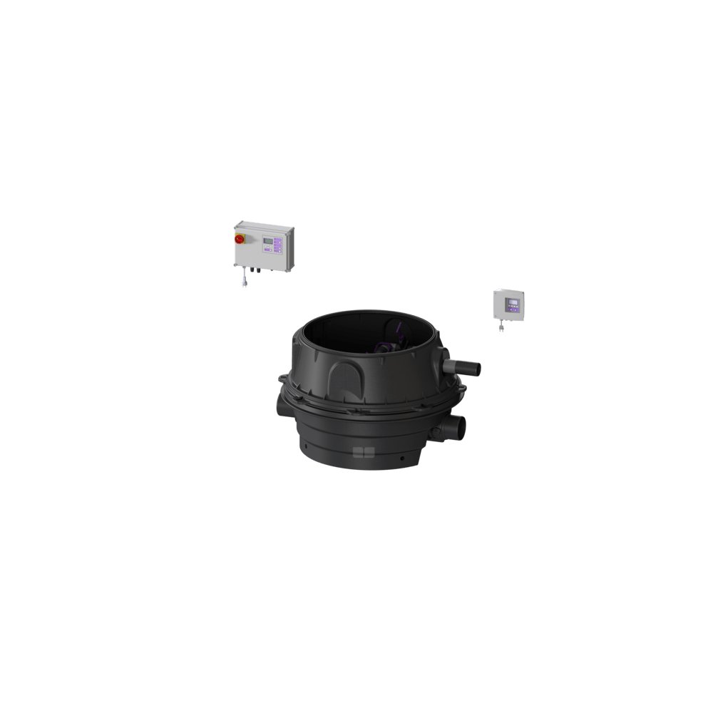 KESSEL Przepompownia przeciw. Ecolift XL, ścieków Ścieki zawierające fekalia i bez fekaliów, zabudowa w ziemi, Pojedyncza jednostka, z pompą zatapialną SPF 1400, czujnik alarmu z Sonda optyczna, sterownik Comfort Plus z redundancją, Wariant z najniższą zabudową