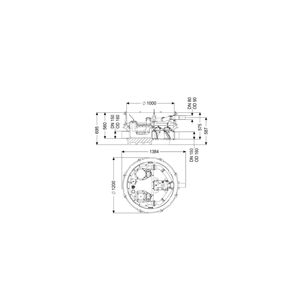 - Przewód tłoczny (DN): 80