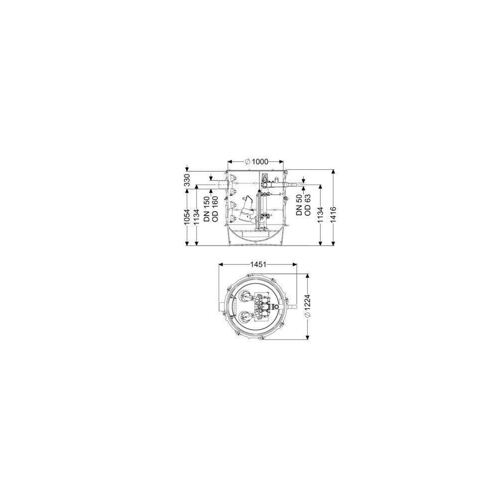• Odstęp między środkiem rury dopływowej a dnem zbiornika: 1134 mm