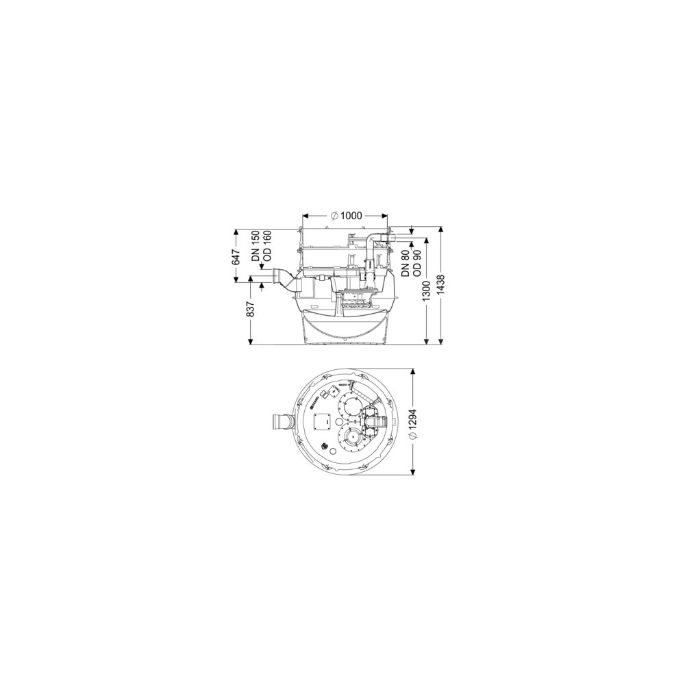 KESSEL Przepompownia Aquapump XL, Tronic, ścieki fekalne, zabudowa w ziemi, wysokość 1403 mm, sterowanie pompą przez sterownik, z pompą zatapialną SPF 1400, typ pracy S3 - 50%, rozpoznawania poziomu pneumatyczny