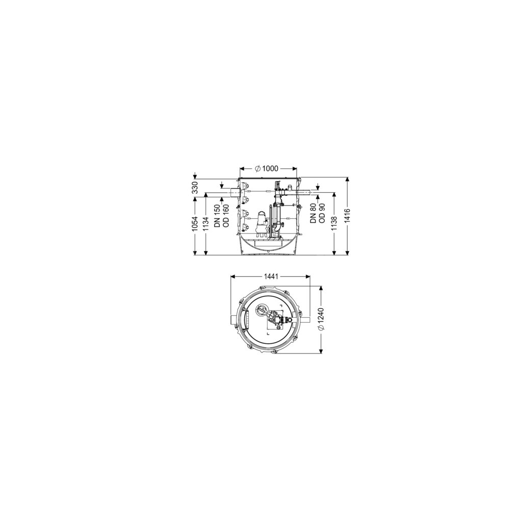 KESSEL Przepompownia Aquapump XL, Tronic, ścieków Ścieki zawierające fekalia lub bez fekaliów (w sposób zabudowy bez wymagań ATEX), zabudowa w ziemi, sterowanie pompą przez sterownik, z pompą zatapialną GTF 1600, typ pracy S1, rozpoznawania poziomu hydrostatyczny