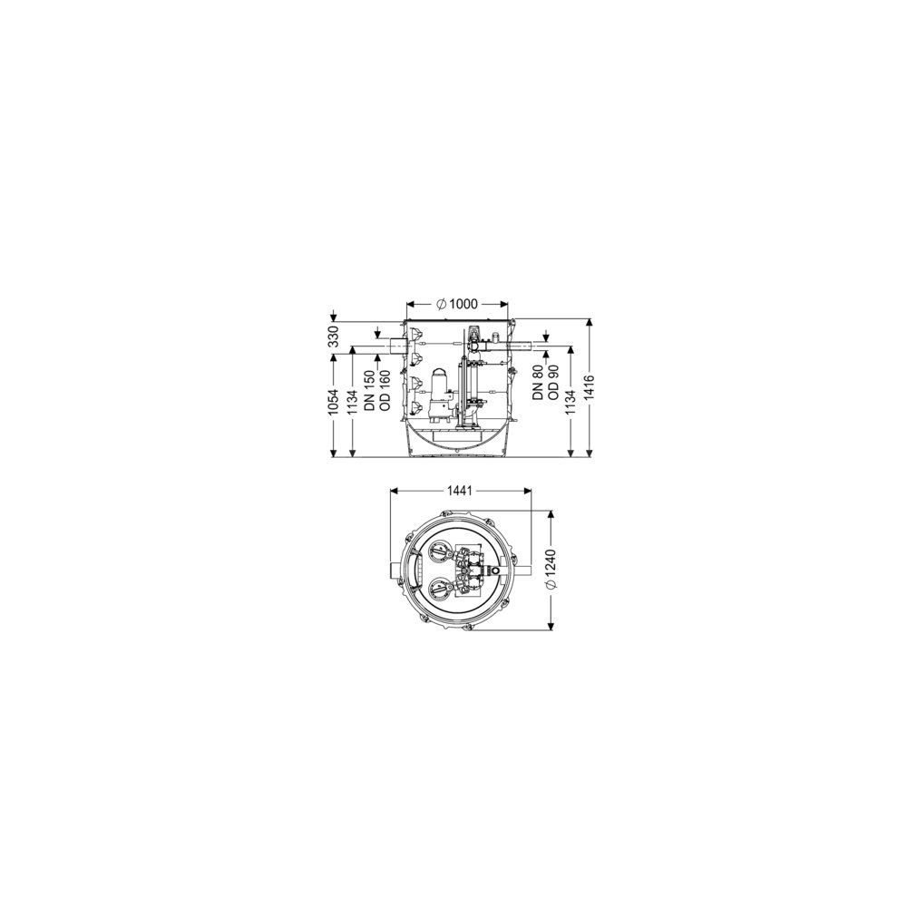 KESSEL Przepompownia Aquapump XL, Duo, ścieków Ścieki zawierające fekalia lub bez fekaliów (w sposób zabudowy bez wymagań ATEX), zabudowa w ziemi, sterowanie pompą przez sterownik, z 2 GTK 3700 pomp zatapialnych, typ pracy S1, rozpoznawania poziomu hydrostatyczny